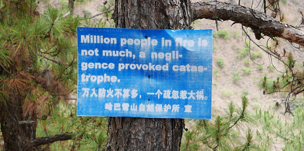 We started coming across these bad Chinglish signs warning against starting a fire in the woods: